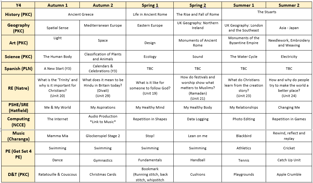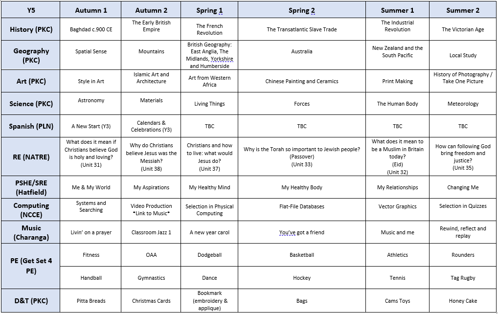 The ‘foundation’ subjects are history, geography, design and technology, art and design, music, physical education (PE), computing, religious education (RE) and languages (we teach Spanish).
